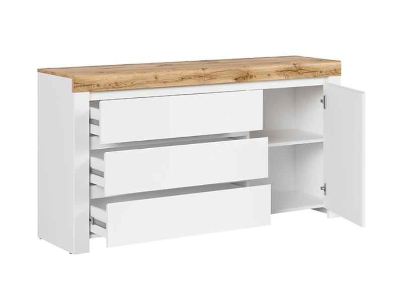 Bijela sjajna komoda sa 4 ladice – neobična i praktična