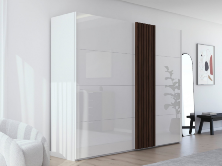 Snježnobijela sjajna vrata i susjedna ogledala otvaraju kraljevstvo u kojem će biti pohranjeni brojni odjevni predmeti raznih namjena, kao i cipele i bezbroj aksesoara.