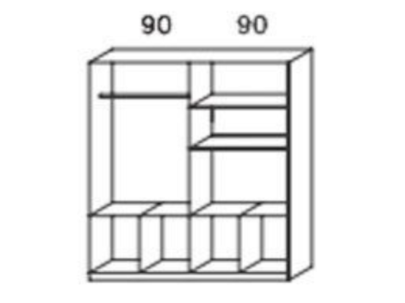 Ormar je opremljen saogledalom koje se nalazi na srednjim frontovima. Veoma korisno kada se spremate za izlazak. Možete popraviti frizuru ili šminku bez napuštanja spavaće sobe. Unutrašnjost ormara prikazana je na slici.