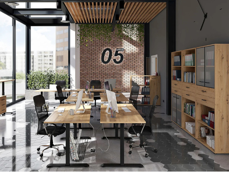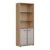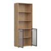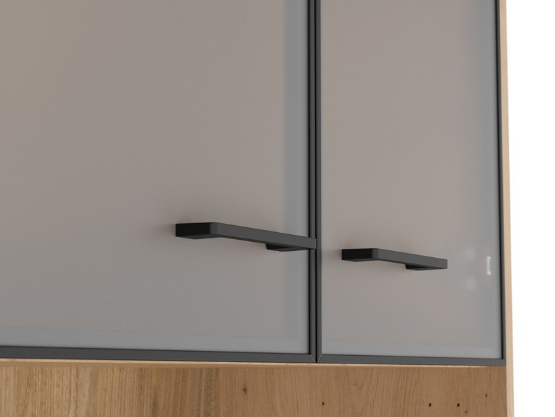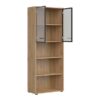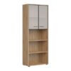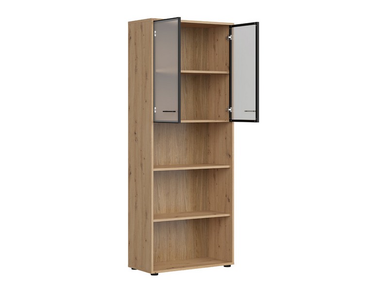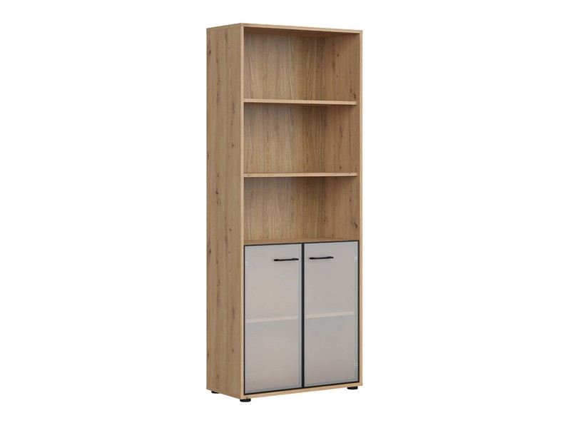 Tri otvorene police omogućit će vam da zgodno rasporedite registratore, fascikle i ostale kancelarijske dodatke koje želite da imate pri ruci. Staklene fronte su završene sa aluminijumskim ramom i šarkama sa sistemom mekog zatvaranja.